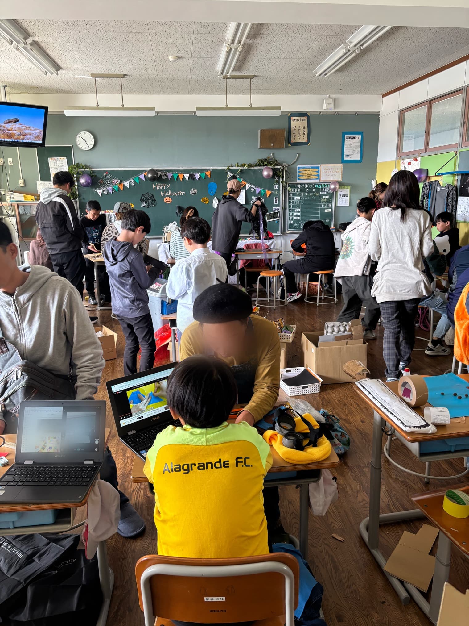 4年1組 教室でハロウィンの仮装パーティーをしました。
